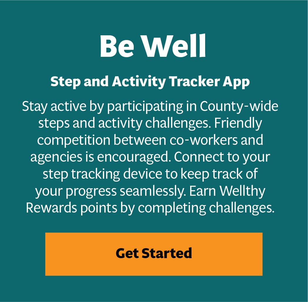 It has been said that health is our most valuable possession. Positive physical health habits can help decrease your stress, lower your risk of disease, and increase your energy. Check out the resources available to you as a County employee to help you balance physical activity, nutrition and mental well-being to keep your body in top condition.